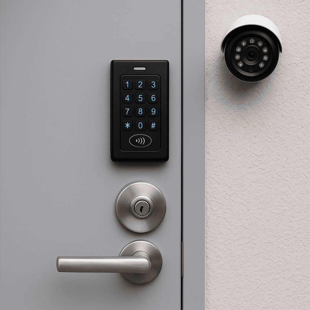 Modernize entry with card, code, or biometric access. Eliminate the expense of having to re-key your building when an employee leaves or a key is copied, lost, or stolen. Just update the system to restore security in seconds. No rekeying required.